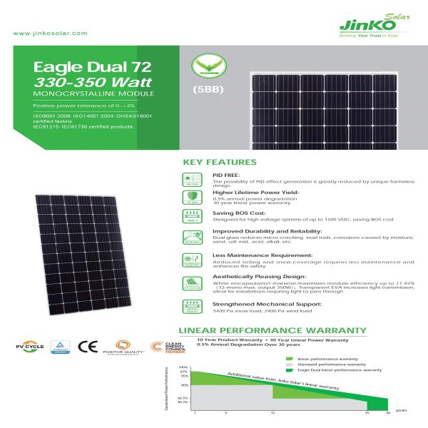 JinkoSolar đã xây dựng một chuỗi giá trị sản phẩm năng lượng mặt trời tích hợp theo chiều dọc với công suất 5.0GW hàng năm được tích hợp cho các thỏi silicon và waffer, 4.0GW cho pin mặt trời, và 6.5 GW cho các module mặt trời, tính đến ngày 31 tháng 12 năm 2016.